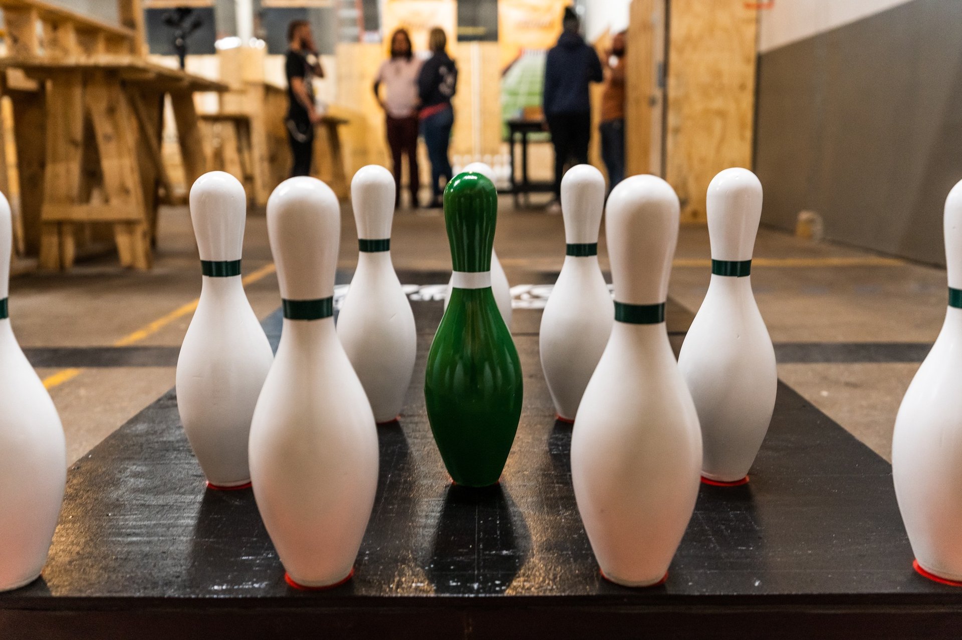 Split your group into 2 teams and stand on opposite ends of the lane.