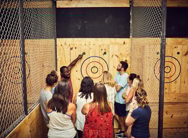 Designed for groups of 4-150+ people, our 1½ - 2 hour group axe throwing events are the most popular way to experience Urban Axes. Perfect for a small office outing or a fun night out with friends!